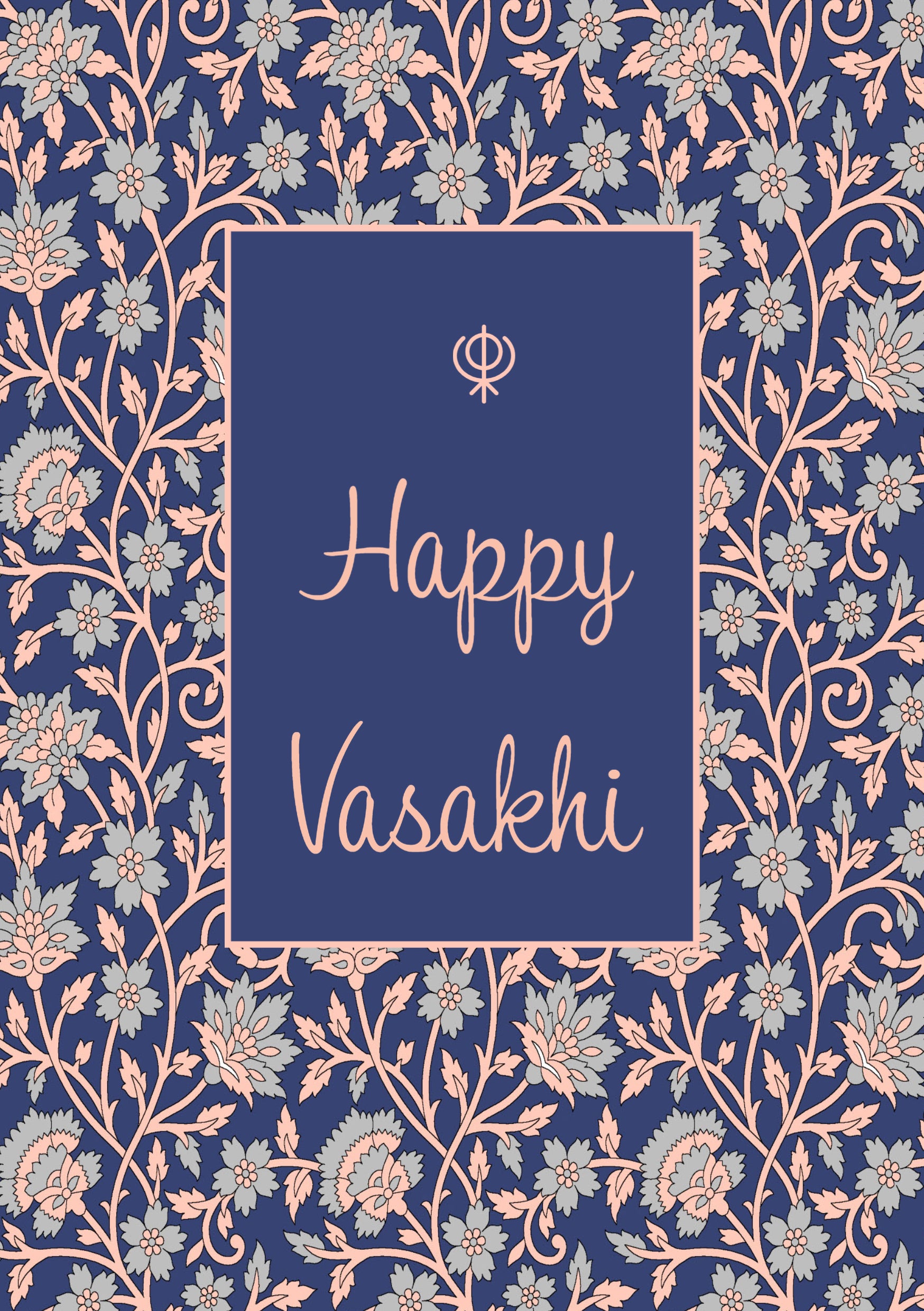 An elegant Vasakhi card set on a background of flowers. Left blank for you to personalise.