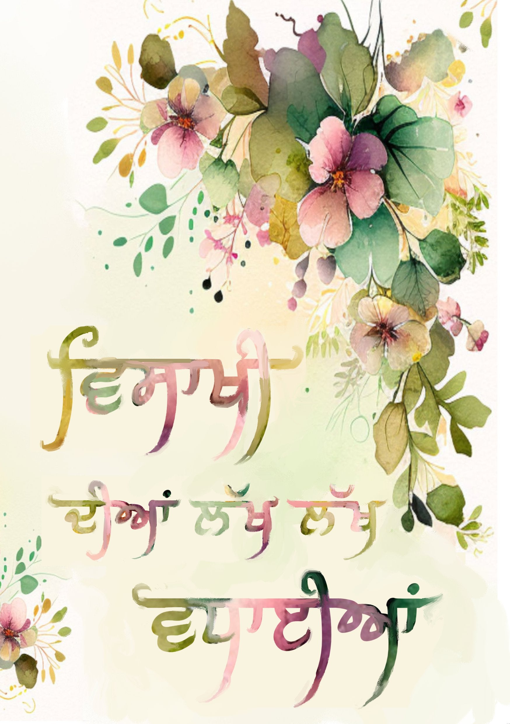 Beautiful Watercoloured Vasakhi Card Set Against Flowers in Panjabi