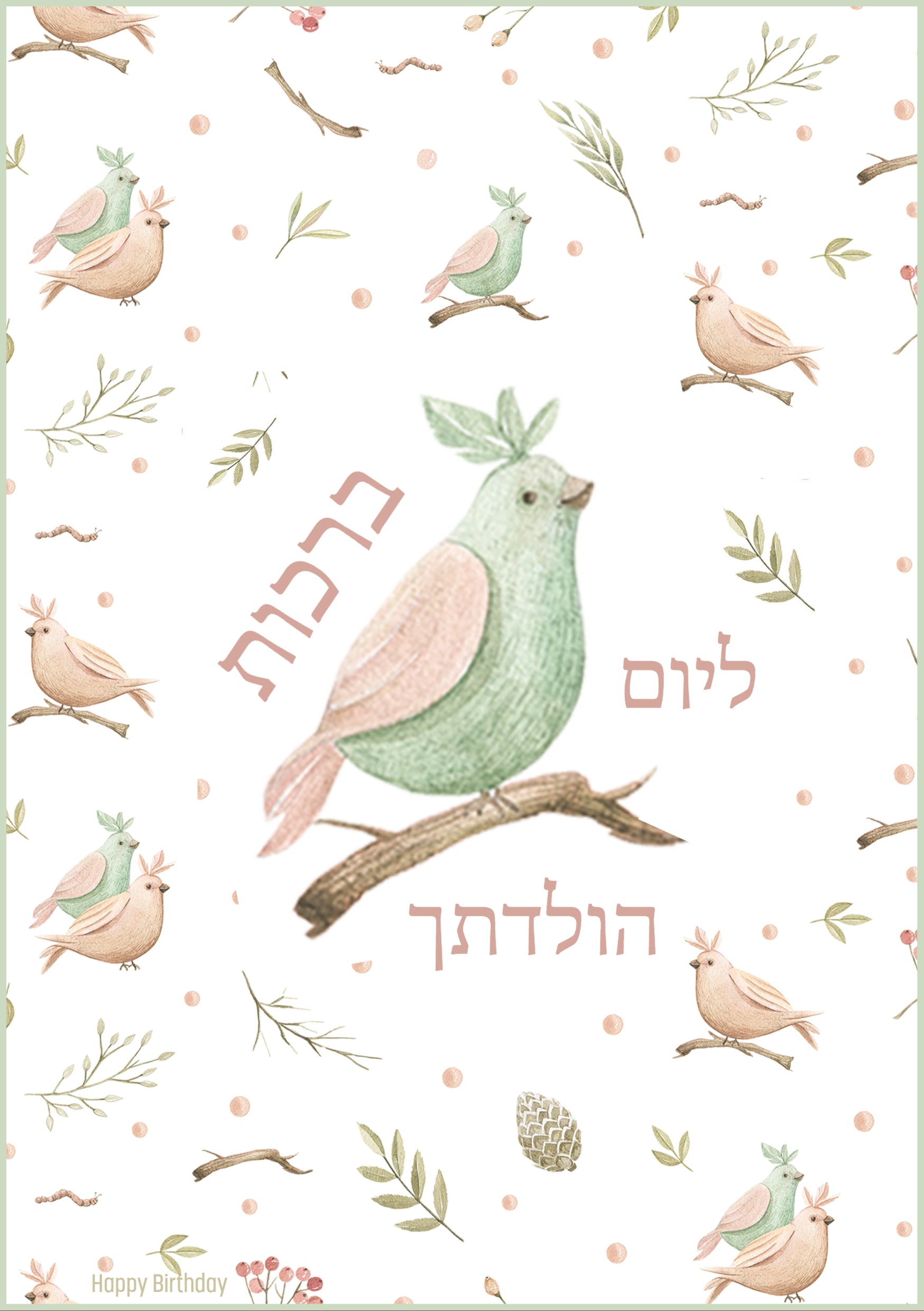 Celebrate their special day in style with this exquisite Jewish Happy Birthday card. Featuring birds perched on a branch, the card is sure to evoke a feeling of joy and warmth on their special day.