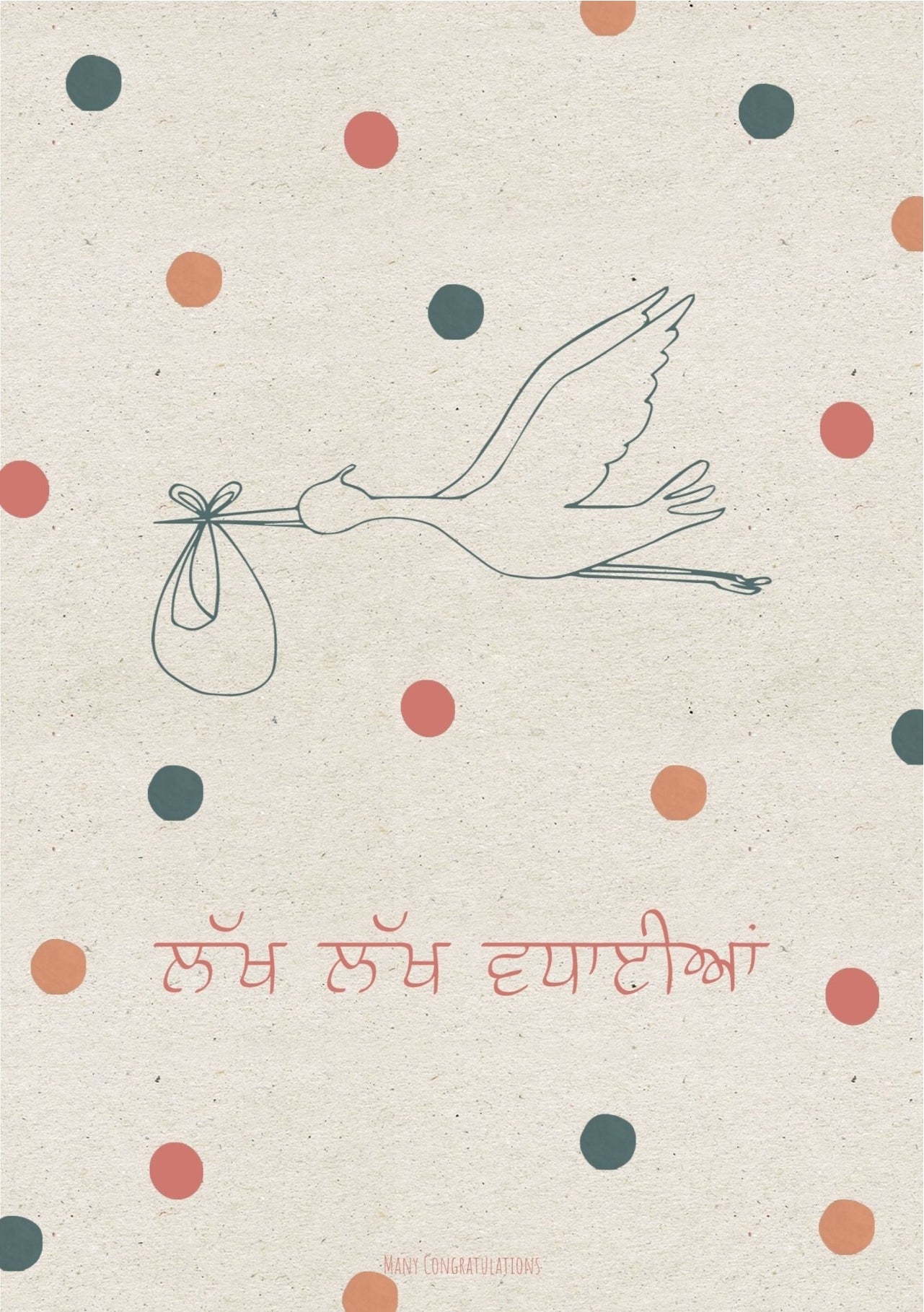 Many Congratulations In Panjabi With Bird Carrying Baby
