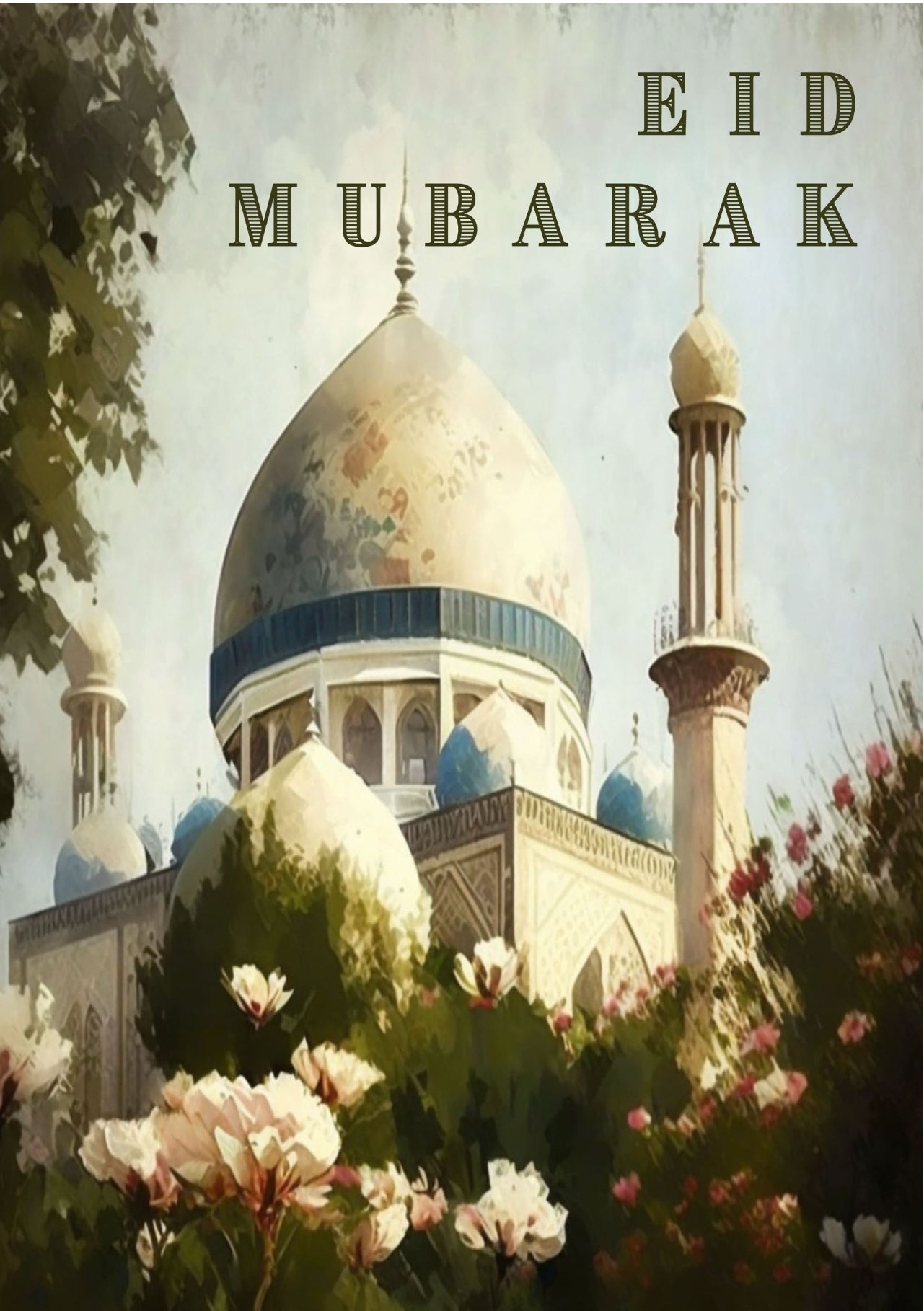 Want to wish someone Eid Mubarak? They will love this beautiful painting of a Mosque surrounded by flowers.